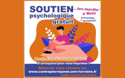 🔶 Chaque mardi après-midi, le Centre Pierre Janet propose un dispositif de soutien psychologique gratuit afin de vous aider à faire face à des difficultés ponctuelles. Pendant 45 minutes, vous serez ainsi libre d’échanger avec un futur professionnel en dernière année...